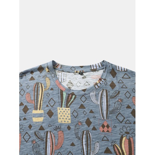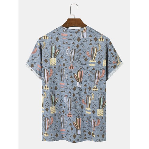 Men 100 Cotton Cartoon Cactus Print Breathable Short Sleeve Leisure T Shirt
