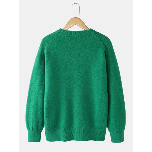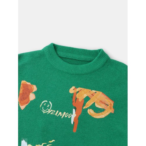 Mens Abstract Print Crew Neck Drop Shoulder Knitting Sweater