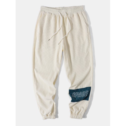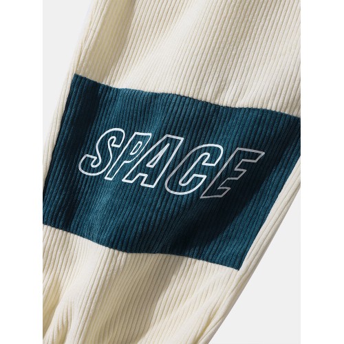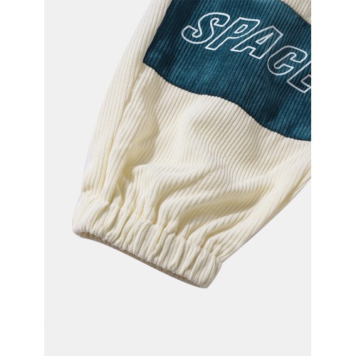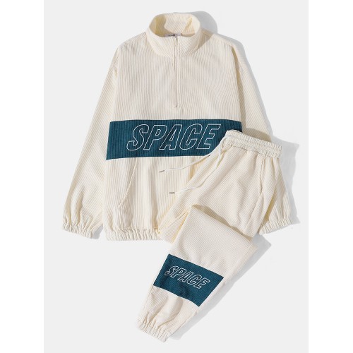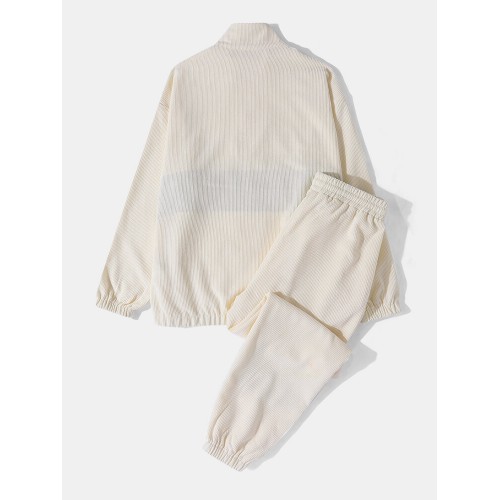 Men Corduroy Patchwork Contrast Color Block Zipper Casual Two Piece Suits