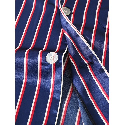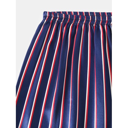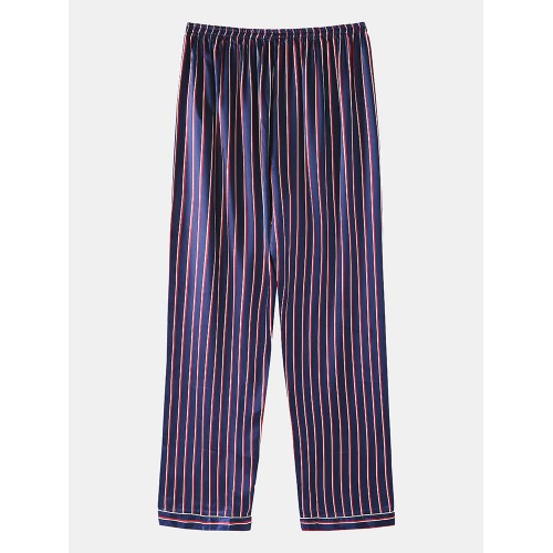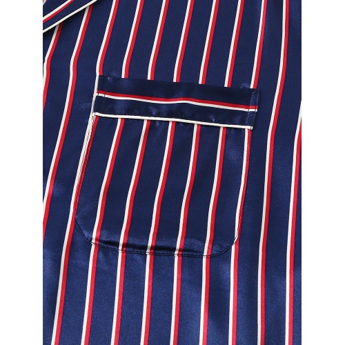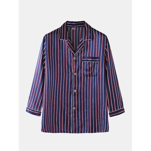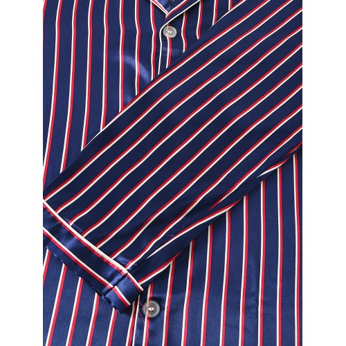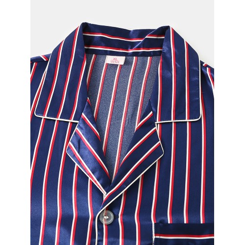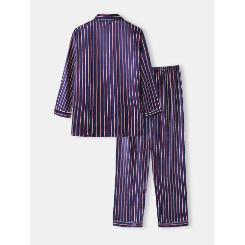 Mens Basic Striped Silk Thin Long Sleeve Home Casual Pajama Set