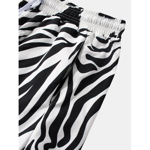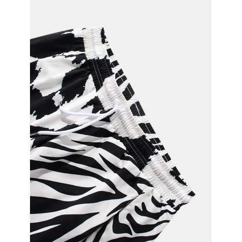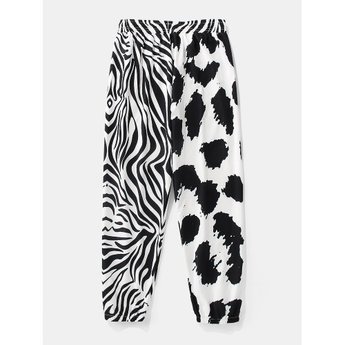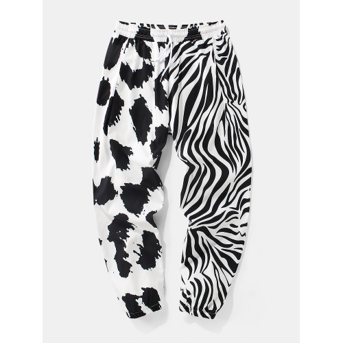 Mens Casual Patchwork Animal Print Drawstring Pants