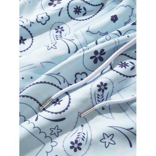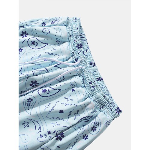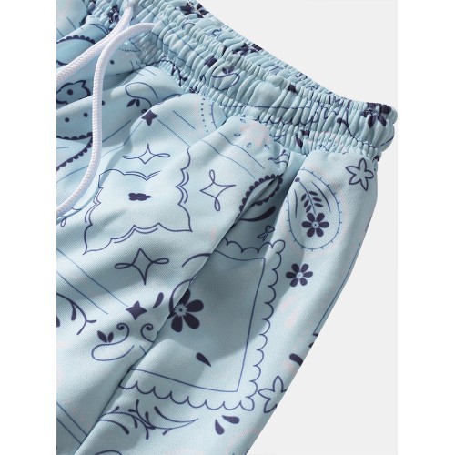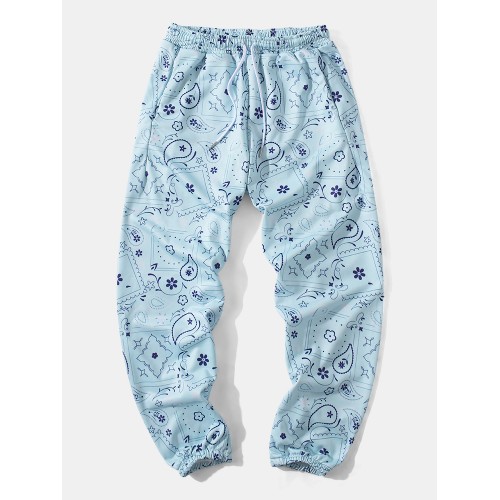 Mens All Over Paisley Print Ethnic Style Drawstring Cuffed Pants